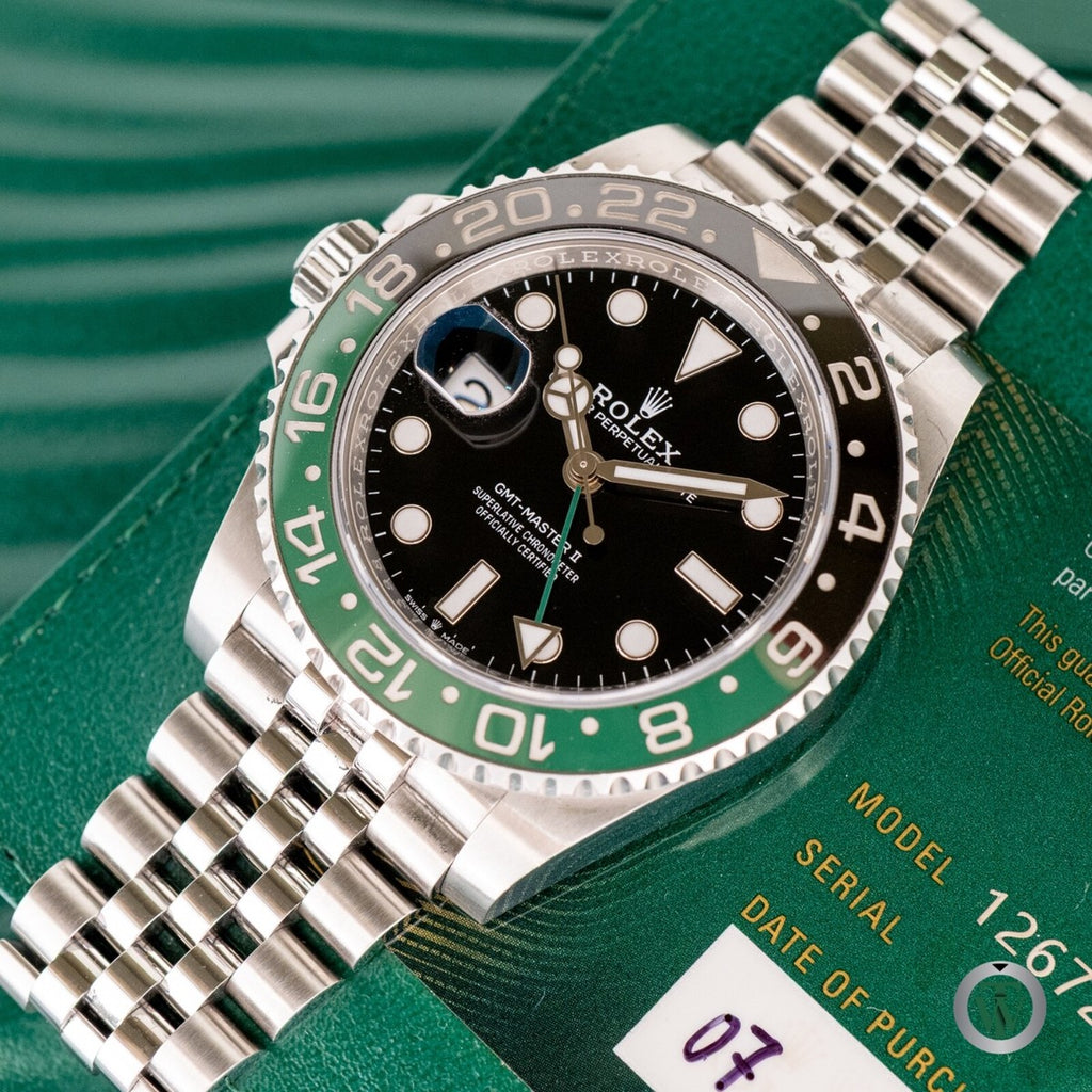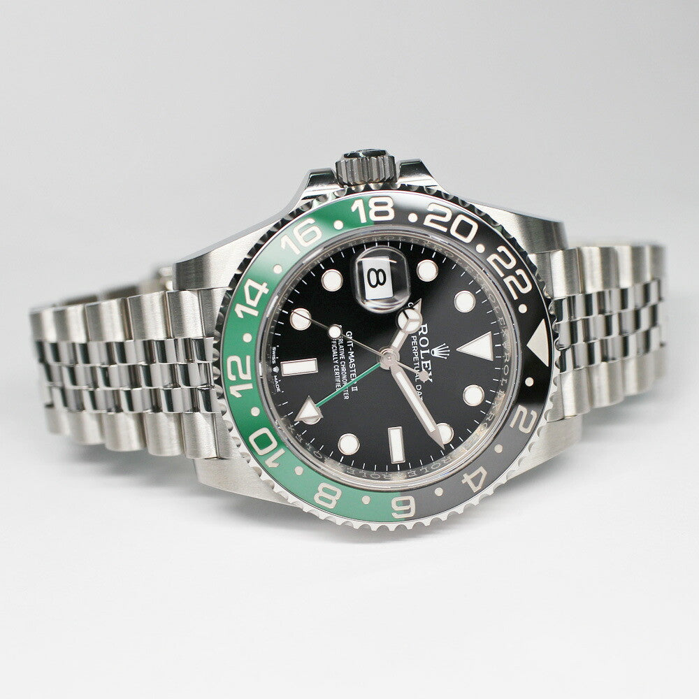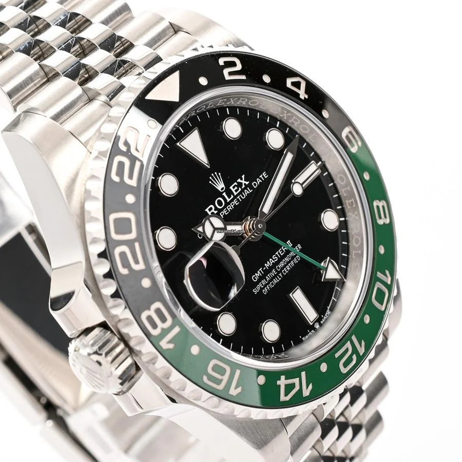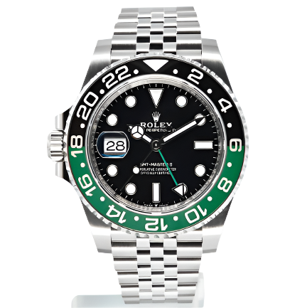 The ROLEX GMT-MASTER II is a precision-engineered timepiece designed for professional travelers. Featuring a dual time zone display with a rotatable 24-hour graduated bezel, it allows seamless tracking of local and home time. Crafted with robust materials and equipped with a reliable automatic movement, this watch combines durability with sophisticated functionality, making it an essential companion for global navigation and refined style.