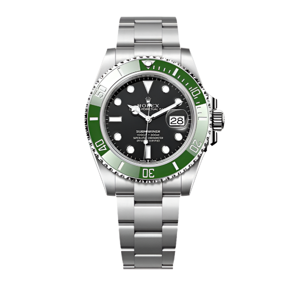 This Rolex Submariner Oyster watch is made with high-grade Oystersteel and boasts a vibrant green color. With a 41 mm face, it offers both durability and style. Perfect for anyone looking for a statement piece that will last for years to come.