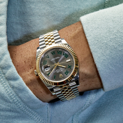 Crafted with a sophisticated blend of yellow gold and stainless steel, the Rolex Datejust Jubilee features a stunning slate dial. With a timeless design and superior materials, this watch offers both luxury and durability. Perfect for any occasion, this timepiece is sure to make a statement.