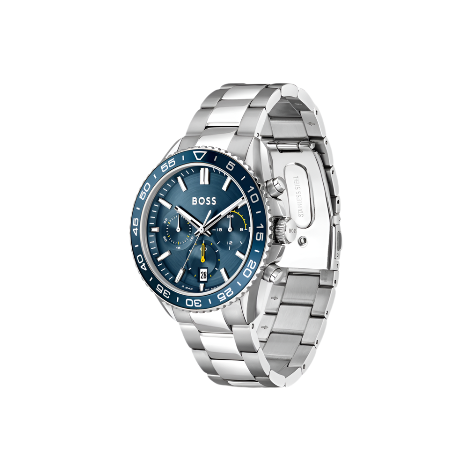 This link-bracelet chronograph watch boasts a striking blue dial that complements any outfit. With precise timekeeping and a durable design, it is perfect for daily wear and special occasions. The link-bracelet allows for a comfortable fit and the chronograph feature adds practicality. Stay stylish and punctual with this expertly crafted timepiece.