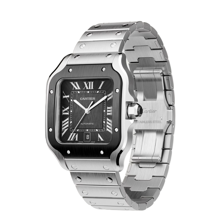 The Cartier Santos de Cartier Large Model represents a pinnacle of horological craftsmanship and timeless design. This iconic timepiece features a distinctive square case with rounded corners, a signature element that has defined the Santos collection since its inception. The large model offers substantial presence on the wrist while maintaining the refined proportions that characterize Cartier's aesthetic philosophy. Crafted with meticulous attention to detail, this watch combines precision engineering with elegant styling. The dial presents a clean, legible design that complements the architectural case geometry. Whether for formal occasions or refined everyday wear, the Santos de Cartier Large Model delivers the sophistication and reliability expected from a luxury Swiss-made timepiece. An investment in enduring style and mechanical excellence.